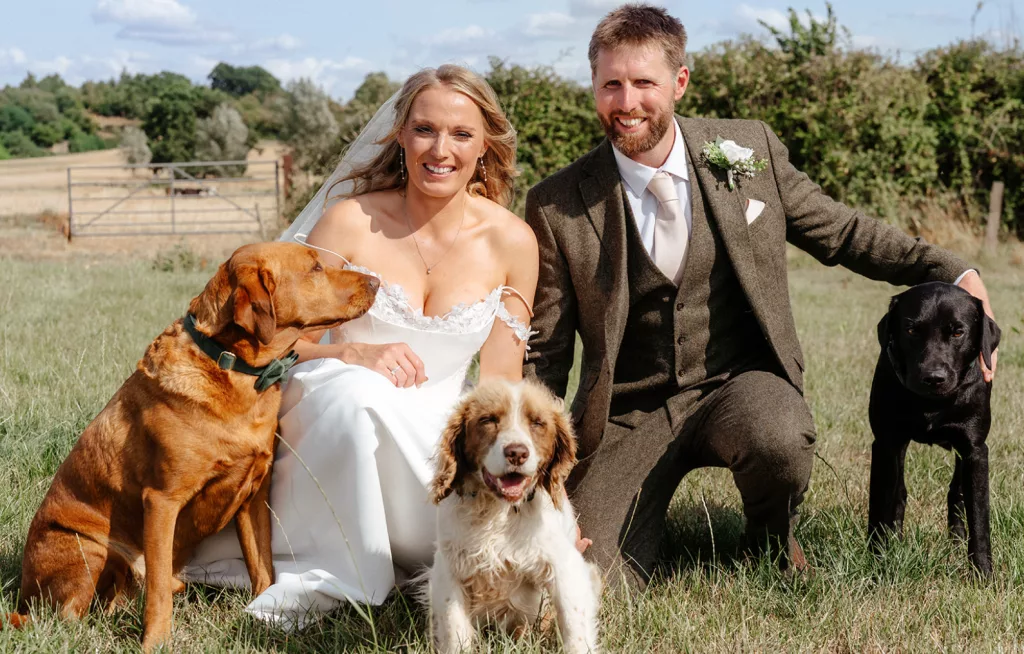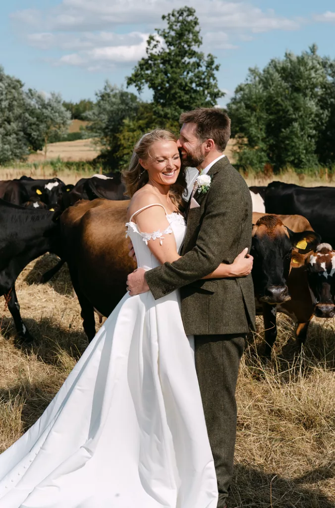 The celebrant ceremony I created for them was deeply rooted in their shared farming history, their origin story, and their love of the outdoors. They adore each other and have done since the moment they met, and what I loved the most was their mutual respect and admiration for the other’s capabilities and core values. Farmers, of course, work incredibly hard, and their wedding day therefore became even more of an event as they seemed to relax wholeheartedly into enjoying everything they’ve created together as if for the first time. Me and Mack, my labrador, had been to visit them on the farm several times to plan the ceremony, so I felt really welcome and familiar with the ceremony area and what I needed to bring for them to it – a traditional yet future-focused ceremony which told their guests why this marriage in this place was meant to be.